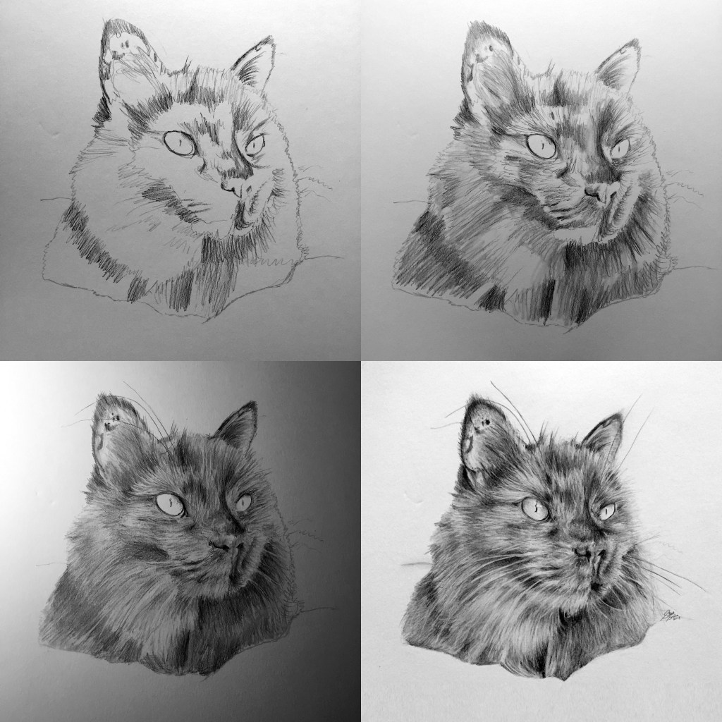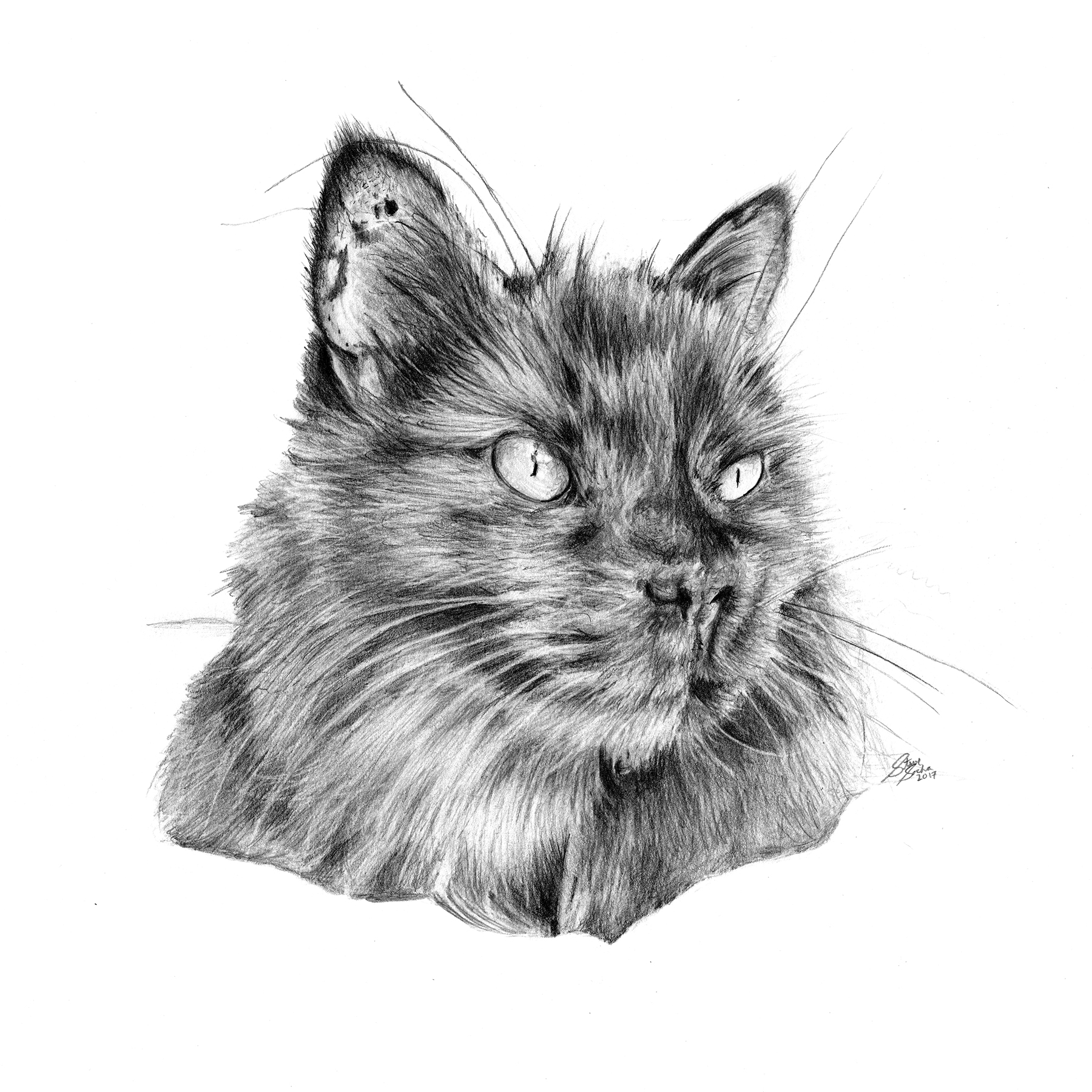 Time lapse portrait of the cat drawing.