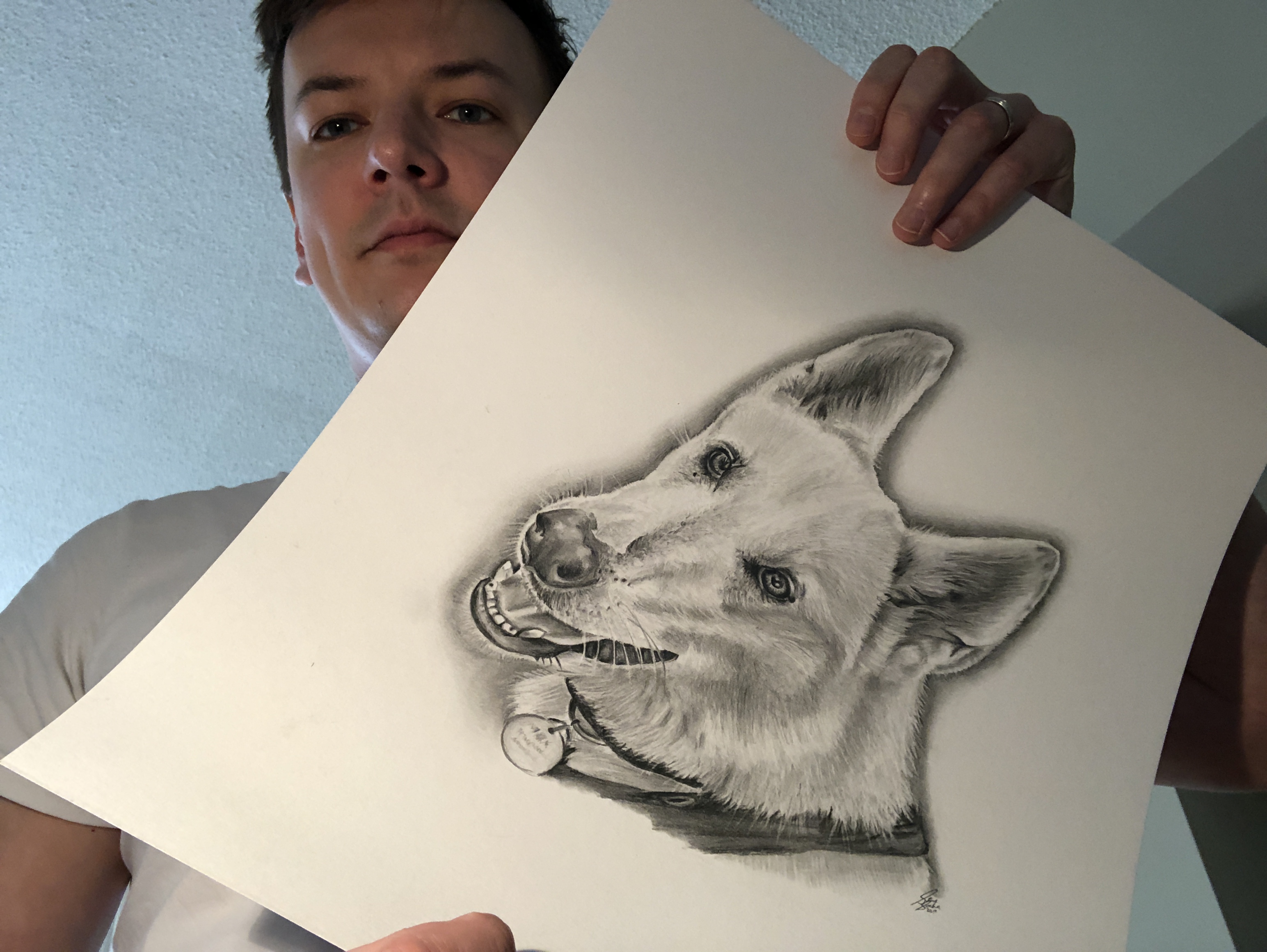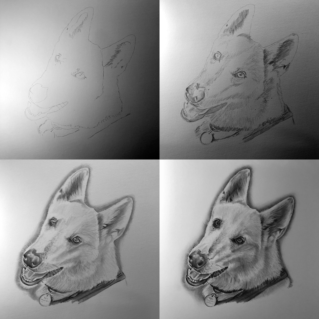 dogs, drawing, illustration, pet illustration, pet portraits, pets, toronto artist, UncategorizedMax May 14, 2019November 3, 2023 stevet0 The original photo used to create the pet portrait of Max. Time lapse video of the drawing being created. Process shots of the pet portrait in progress. The final pet portrait. The completed pet portrait. Drawing vs. Photo. Me with the pet portrait. 43.656806 -79.377203 Toronto, ON, Canada Share this: Click to share on X (Opens in new window) X Click to share on Facebook (Opens in new window) Facebook Like Loading... Related Published by stevet0 View all posts by stevet0