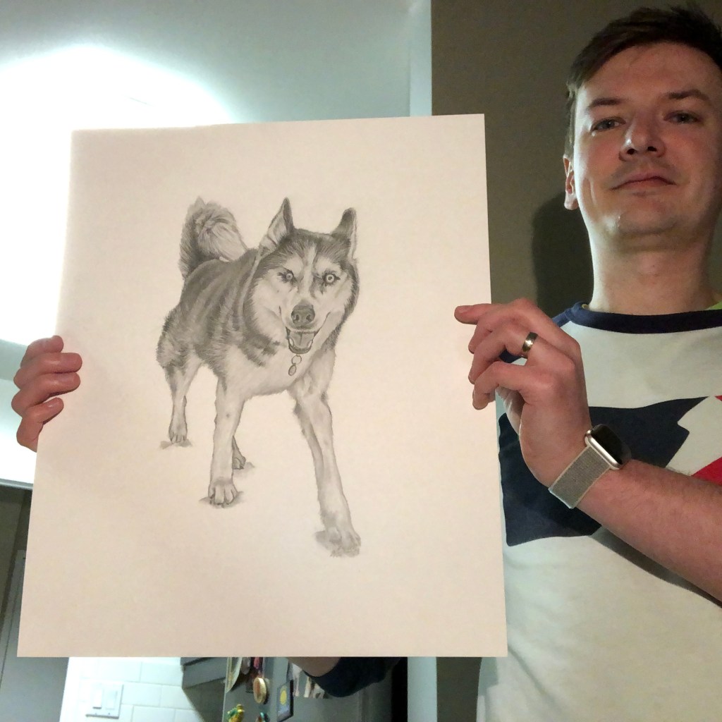 dogs, drawing, illustration, pet illustration, pet portraits, pets, toronto artist, UncategorizedBauer February 27, 2020November 19, 2023 stevet0 The original photo used to create the pet portrait of Bauer. Time lapse video of the drawing being created. Process shots of the pet portrait in progress. The final pet portrait. The completed pet portrait. Drawing vs. Photo. Me with the pet portrait. 43.637146 -79.393587 Toronto, ON, Canada Share this: Click to share on X (Opens in new window) X Click to share on Facebook (Opens in new window) Facebook Like Loading... Related Published by stevet0 View all posts by stevet0