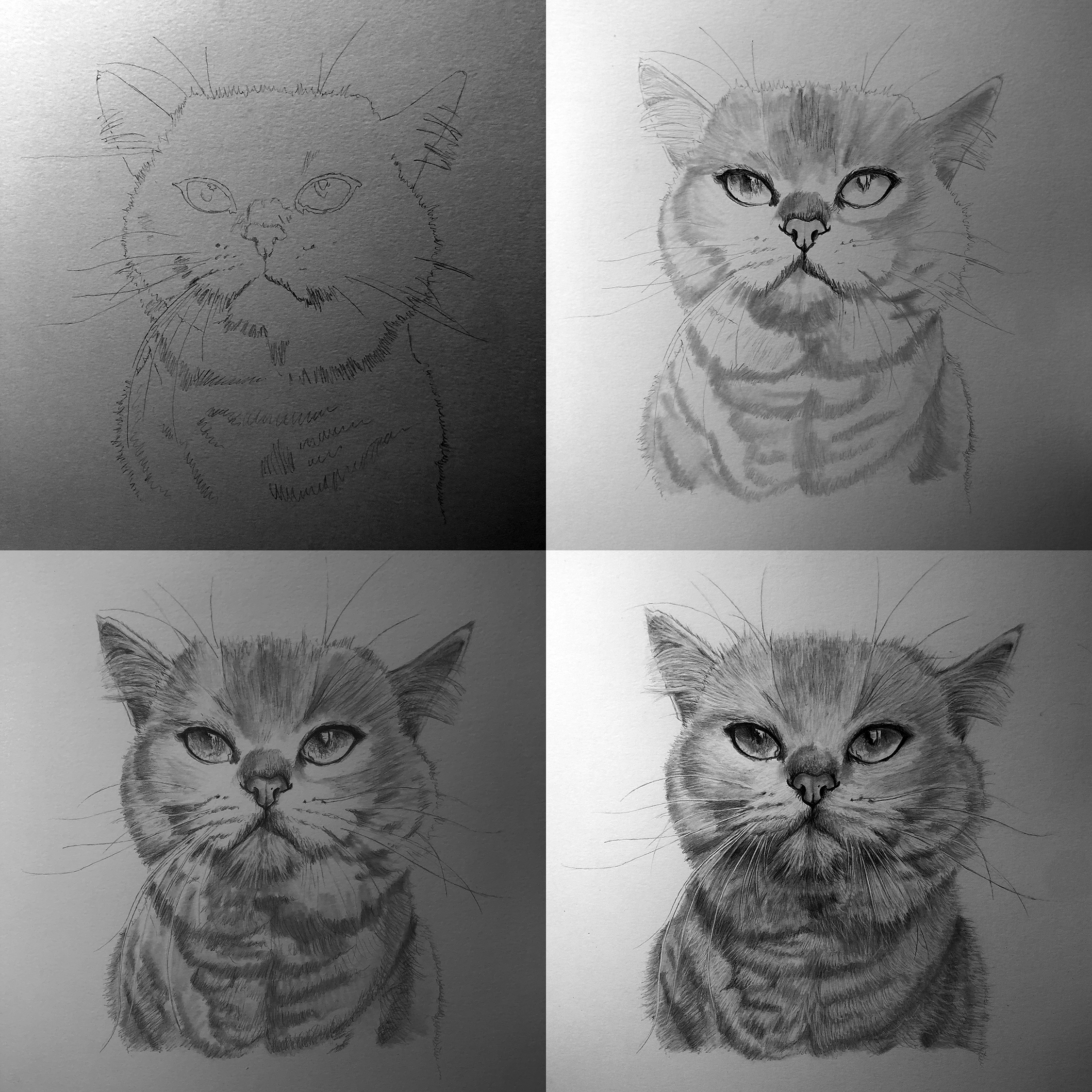 Time lapse video of the drawing being created.Process shots of the pet portrait in progress.The final pet portrait.The completed pet portrait.Me with the pet portrait.Drawing vs. Photo.