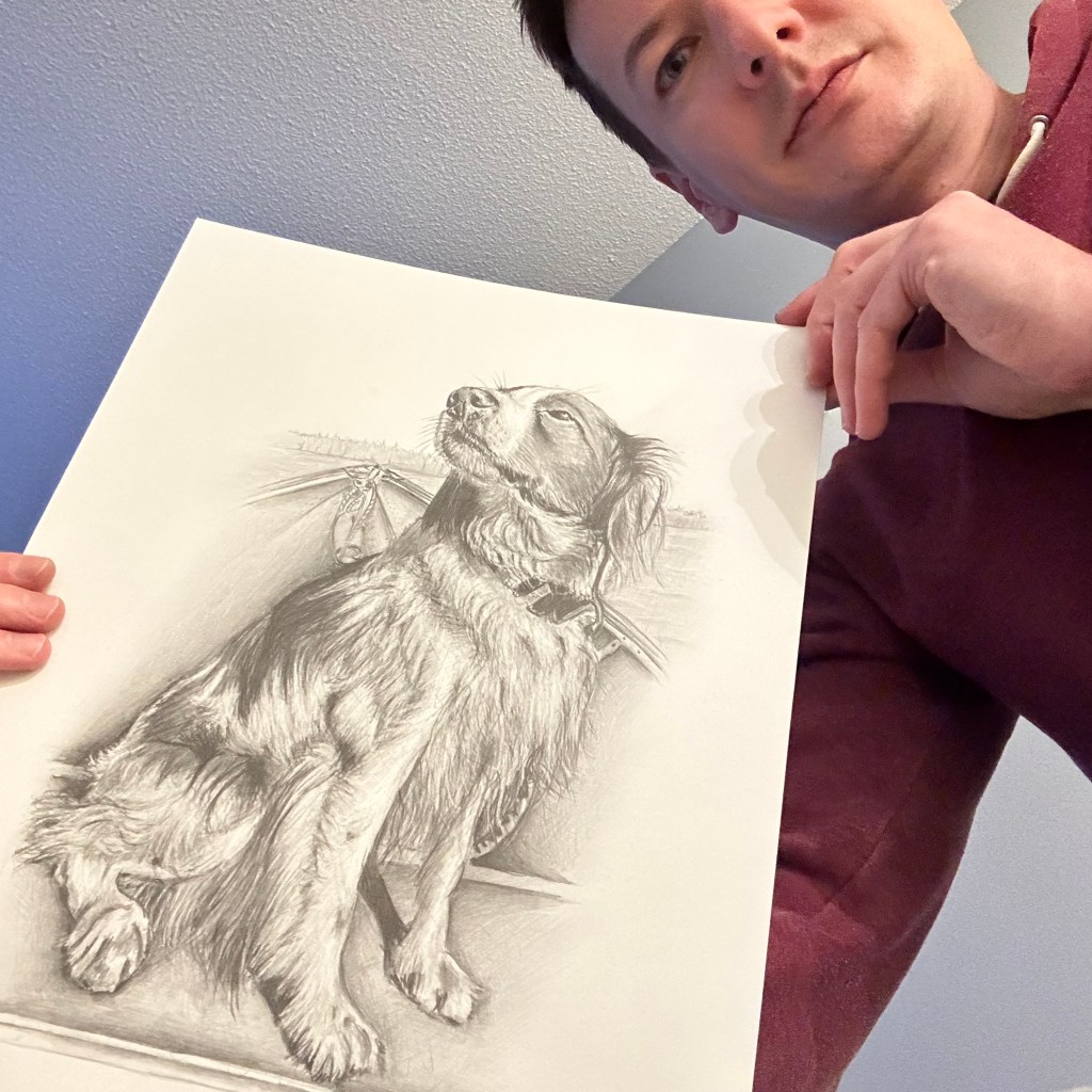 dogs, drawing, illustration, pet illustration, pet portraits, pets, toronto artistMax January 6, 2024 stevet0 The original photo used to create the pet portrait of Max. Time lapse video of the drawing being created. Process shots of the pet portrait in progress. The final pet portrait. The completed pet portrait. Me with the pet portrait. Drawing vs. Photo. Share this: Click to share on X (Opens in new window) X Click to share on Facebook (Opens in new window) Facebook Like Loading... Related Published by stevet0 View all posts by stevet0