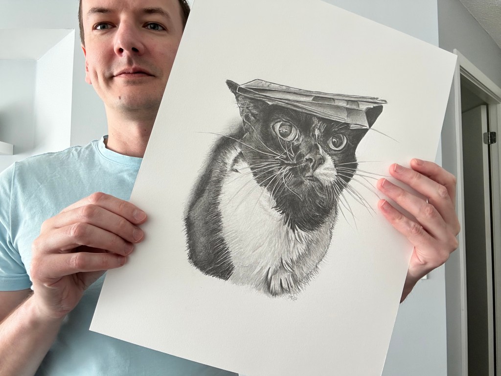 cats, drawing, illustration, pet illustration, pet portraits, pets, toronto artistLulu August 26, 2025 stevet0 The original photo used to create the pet portrait of Lulu. Time lapse video of the drawing being created. Process shots of the pet portrait in progress. The final pet portrait. The completed pet portrait. Me with the pet portrait. Drawing vs. Photo. Share this: Click to share on X (Opens in new window) X Click to share on Facebook (Opens in new window) Facebook Like Loading... Related Published by stevet0 View all posts by stevet0