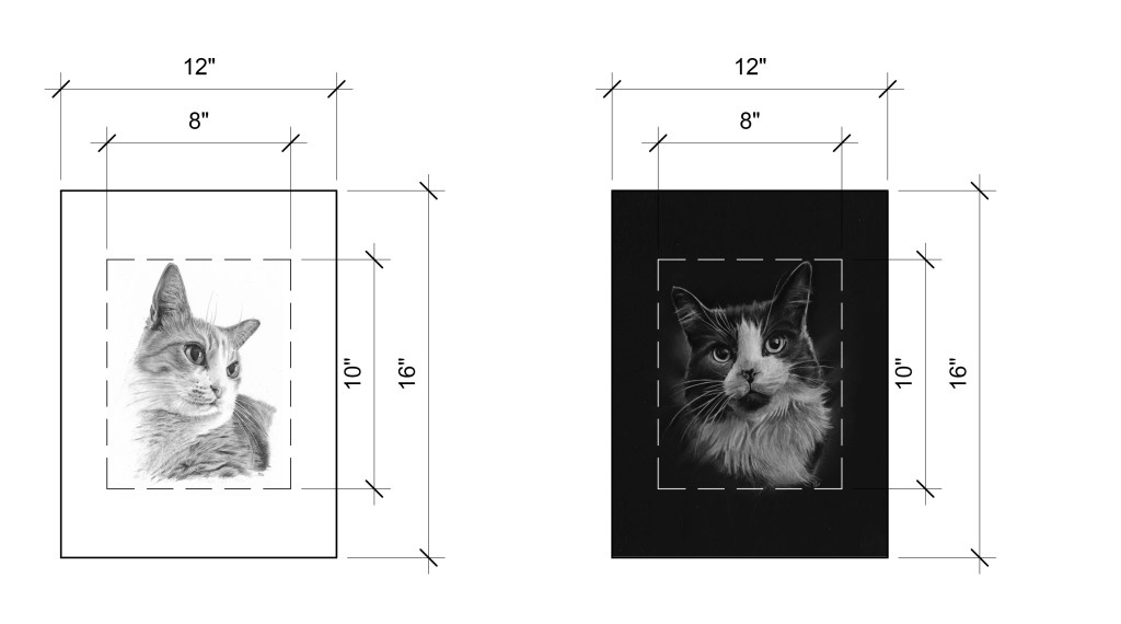 - Drawing is centered on 12″x16″ paper to allow for clean framing with a natural border