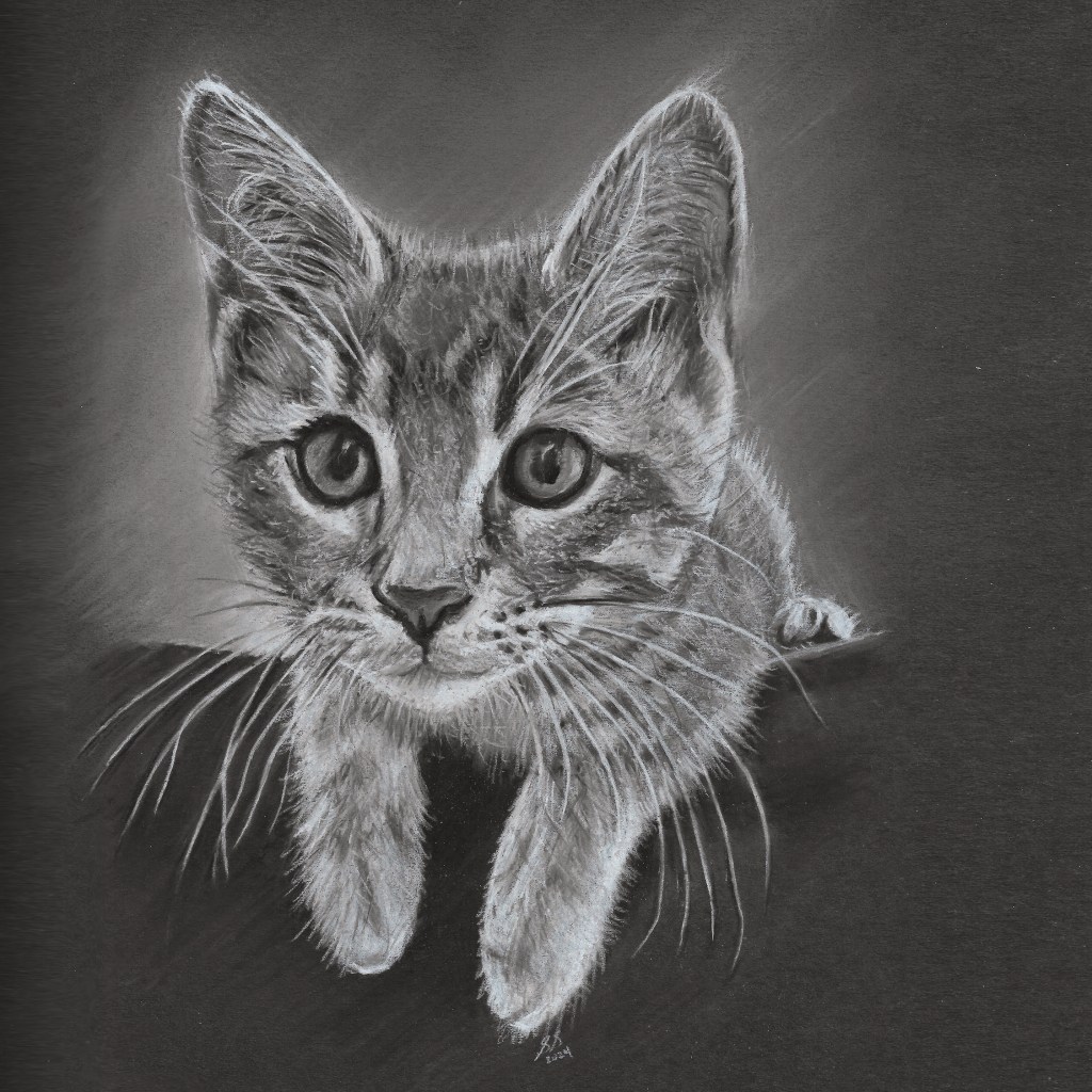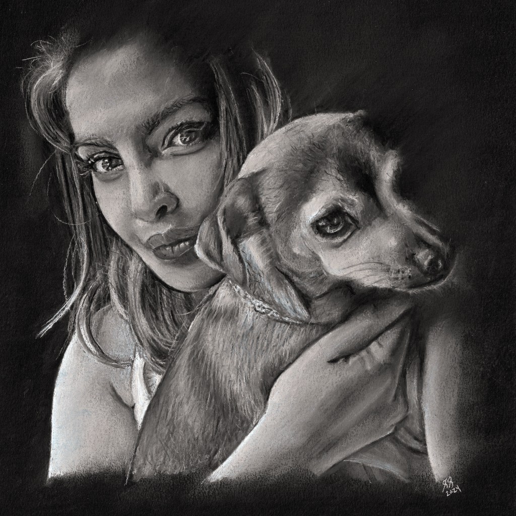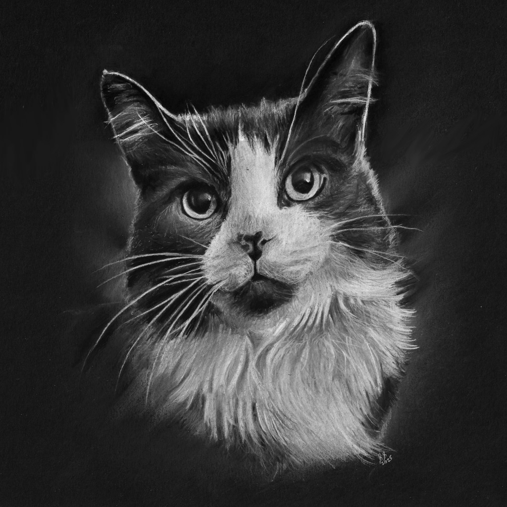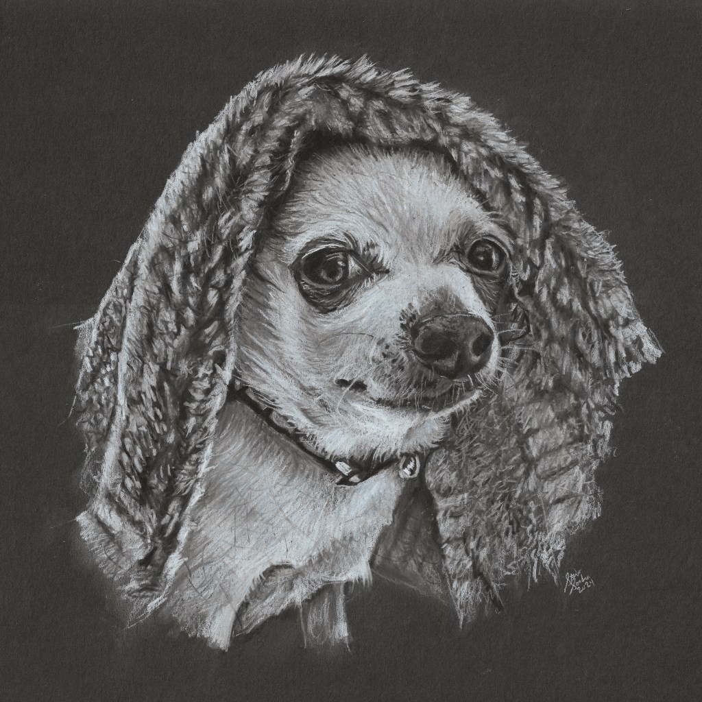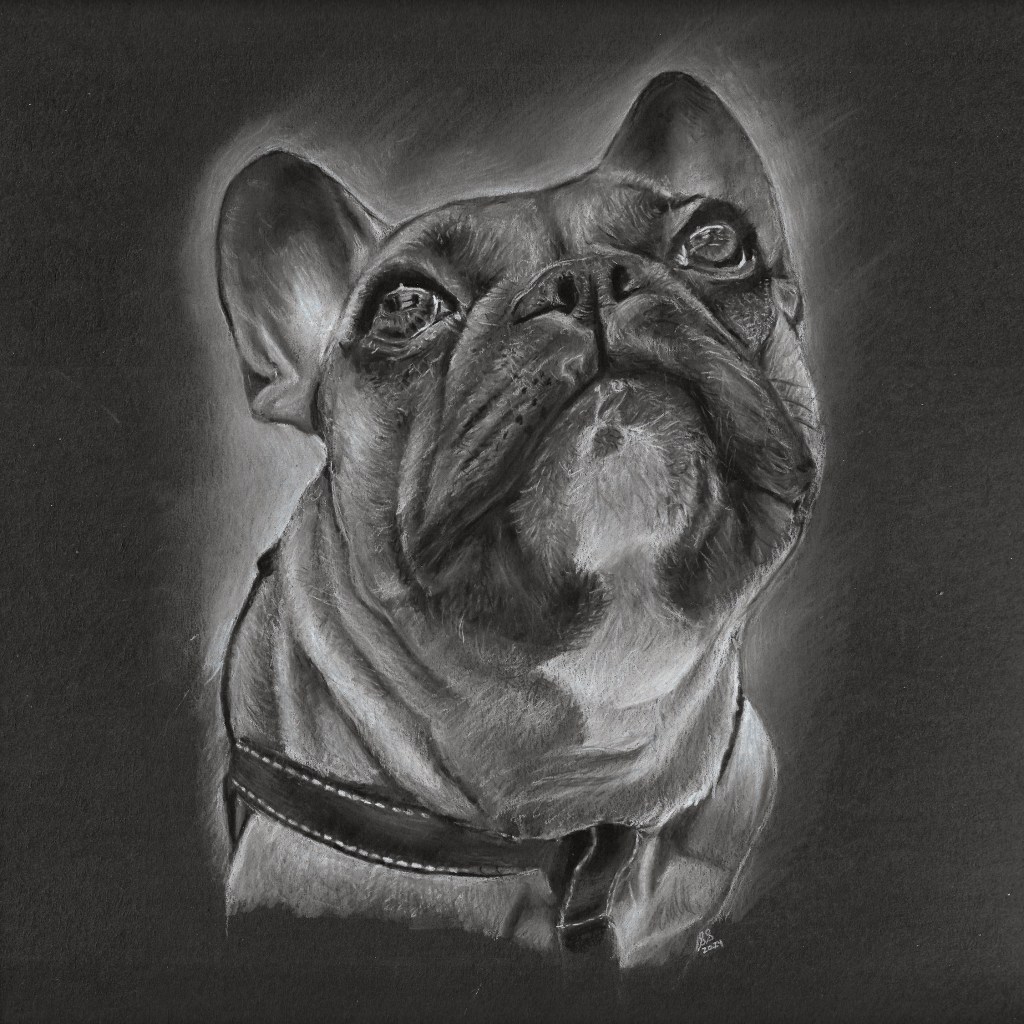 Below is a collection of custom pet portraits I’ve completed over the years—each one drawn by hand using graphite or white charcoal.